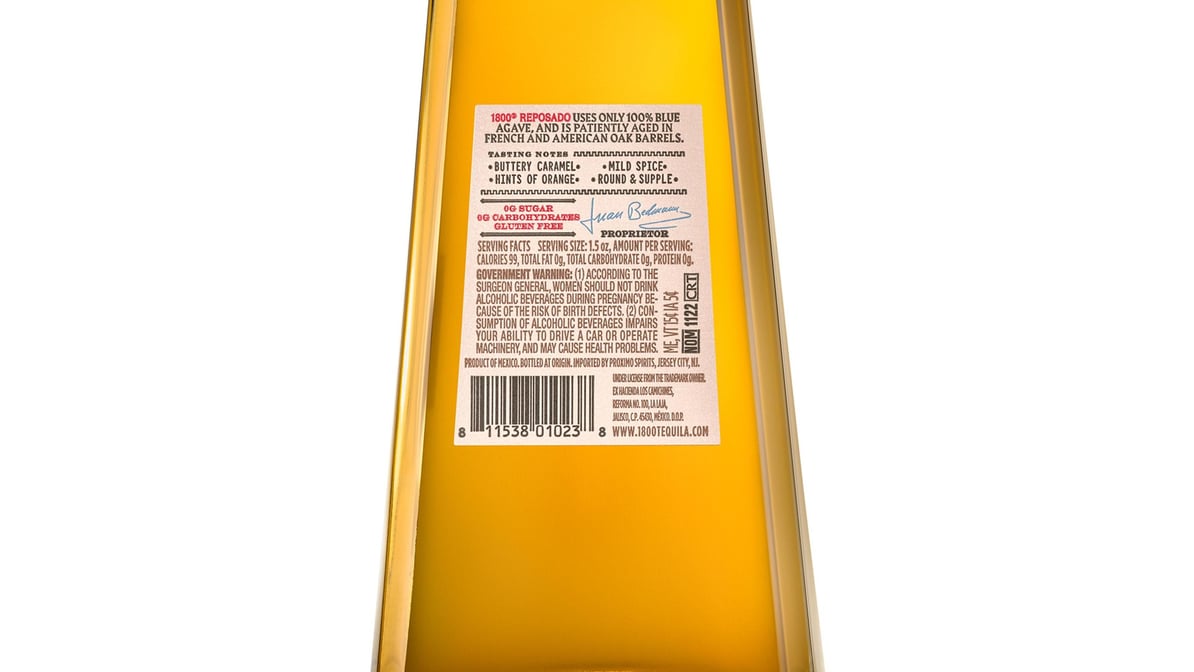 1800 80 Proof Reposado Tequila Bottle (750 ml)