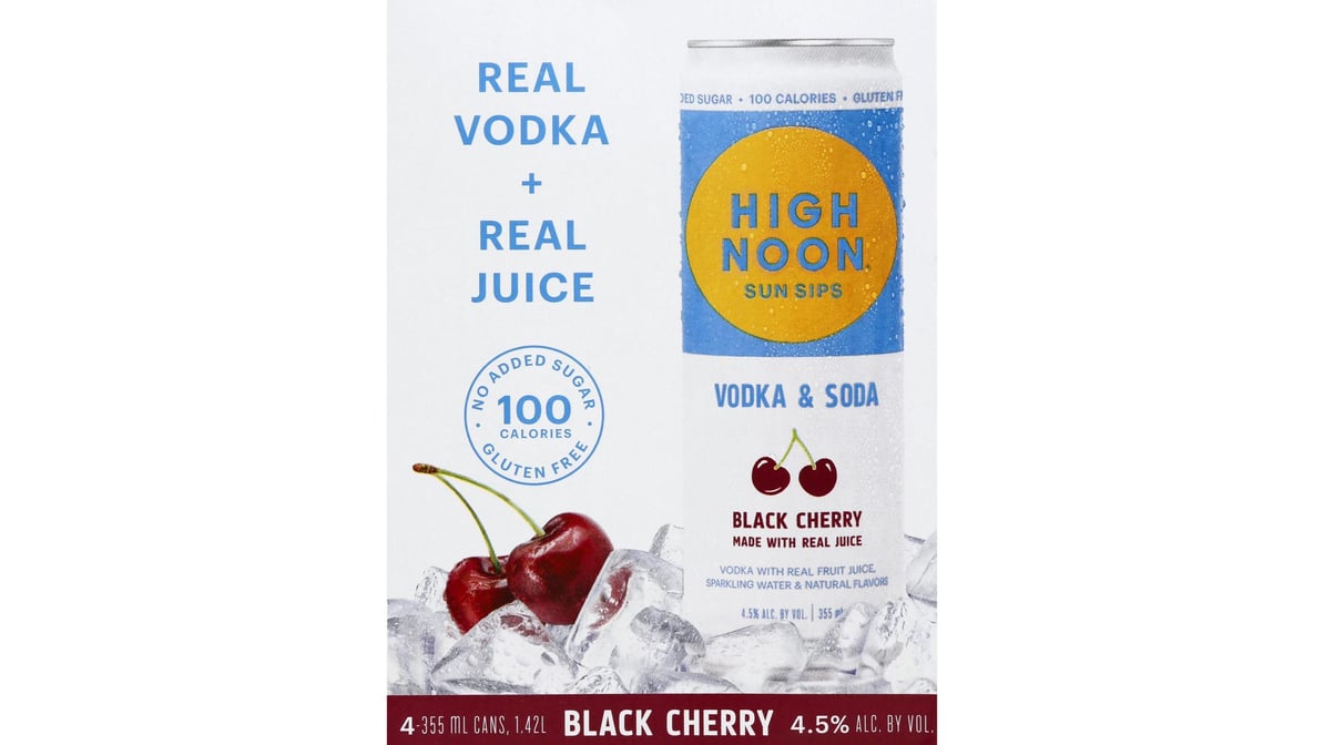 High Noon Sun Sips Gluten Free No Added Sugar Black Cherry Vodka & Soda Cans (12 oz x 4 ct)