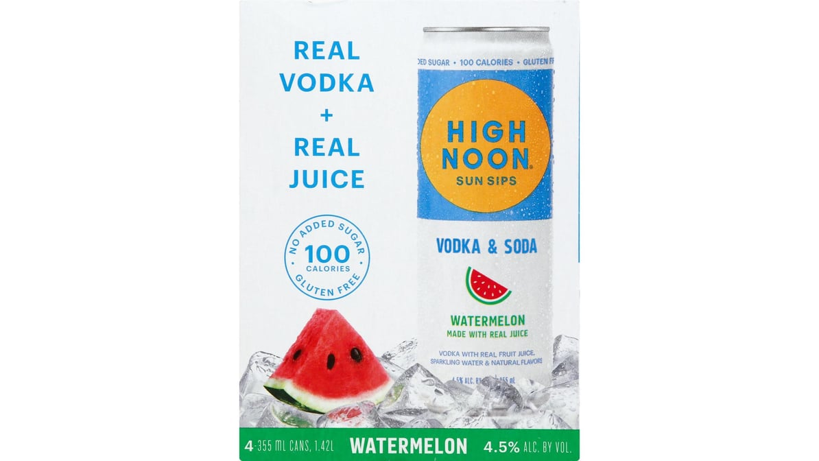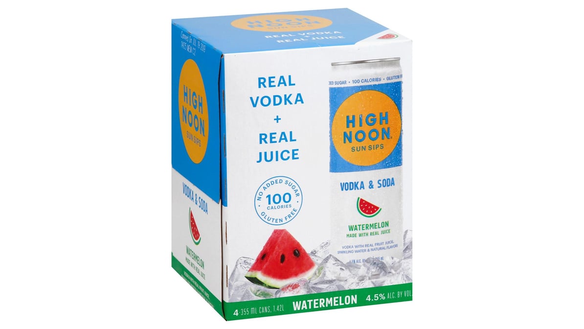High Noon Sun Sips Gluten Free No Added Sugar Watermelon Hard Seltzer Cans (12 oz x 4 ct)
